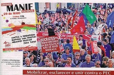 E assim é. Nós por cá somos assim. Quando nos manifestamos contra as políticas que contra nós são, e se temos razões para isso!, fazemo-lo à nossa maneira. Como nós por cá somos. As primeiras filas, a “cabeça da manifestação” ainda vá lá. Os panos bem seguros por umas vinte mãos, dizendo o mais importante a sublinhar, a cores, o NÃO, e assim se conseguem umas dez ou vinte filas dos camaradas e companheiros mais responsáveis. Pelo meio, umas organizações em que se repetem "cabeças de manifestação". Responsáveis segurando panos dizendo o que tem de ser dito, uma carrinha ou um carro a chamar às palavras de ordem, alguns mais afoitos – cada um é como cada qual - com megafones.